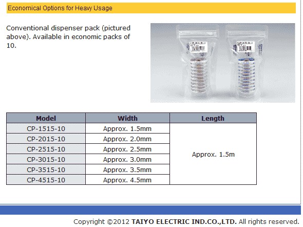 , Thay vì mỗi cuộn bấc trước kia nằm riêng trong một bao nilon, thì hiện nay sẽ là 10 cuộn trong một bao. hình dáng, màu sắc và kich thước cuộn bấc không thay đổi. vui lòng xem thêm thông tin trên trang web của TAIYO ELECTRIC theo link sau: