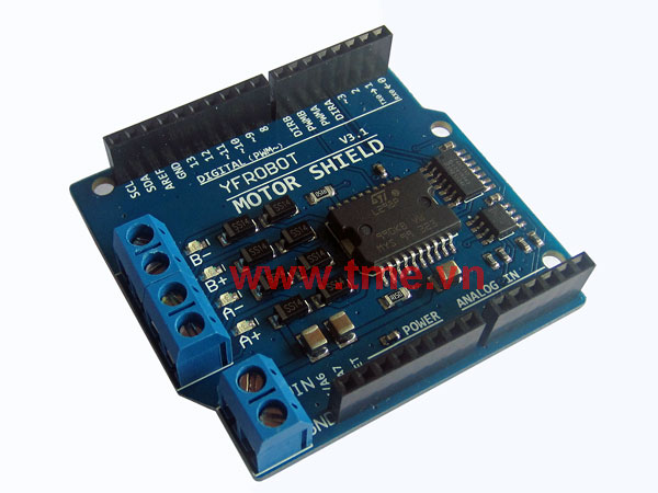 The Arduino Motor Shield is based on the L298 (datasheet), which is a dual full-bridge driver designed to drive inductive loads such as relays, solenoids, DC and stepping motors. It lets you drive two DC motors with your Arduino board, controlling the speed and direction of each one independently. You can also measure the motor current absorption of each motor, among other features. The shield is TinkerKit compatible, which means you can quickly create projects by plugging TinkerKit modules to the board.