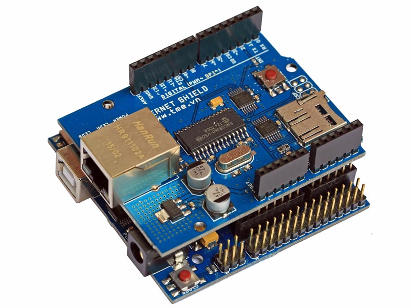 Hình minh họa kết nối với Arduino Shield (ENC28J68 Ethernet Shield)