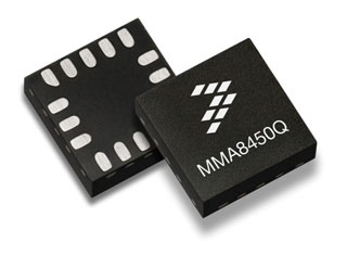 The MMA8450Q accelerometer is an intelligent low power and noise, 3 x 3 x 1 mm capacitive micromachined accelerometer featuring 12 bits of resolution. This accelerometer is packed with many flexible user programmable embedded functions that are available with two configurable interrupt pins. MMA8450Q has user selectable full scales of ±2g/±4g/±8g and it is capable of measuring accelerations with an Output Data Rate (ODR( of 400 Hz, 200 Hz, 100 Hz, 50 Hz, 12.5 Hz, and 1.563 Hz. These output data rates correspond to sample intervals from 2.5 ms to 640 ms. The device can be configured to generate inertial wake-up interrupt signals when a programmable acceleration threshold is crossed on any one of the three sensed axes. Acceleration and time thresholds of interrupt generators are programmable by the end user.MMA8450Q is available in a plastic QFN package and it is guaranteed to operate over the extended temperature range of -40°C to +85°C.