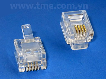 Đầu bấm RJ11 4-pin trong vỏ loại 6-pin (2-pin trống 2 bên)