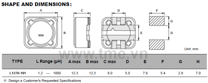 - Size: SMD L x W x H = 12 x 12 x 8 mm