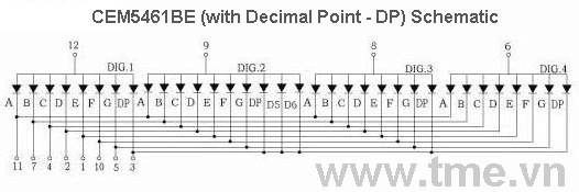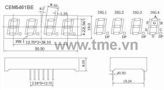 0.56" (14.20mm) Anode 7-Segment display RED color, Decimal Dot