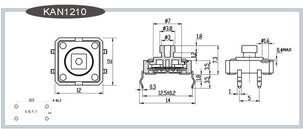 Standard 12mm square momentary button