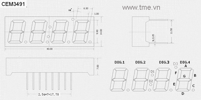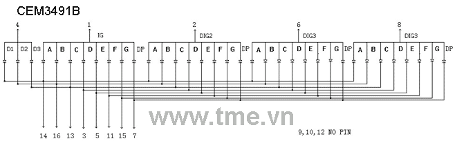 Four digit led numeric display. (decimal dot, clock dot, Deg.C dot)
