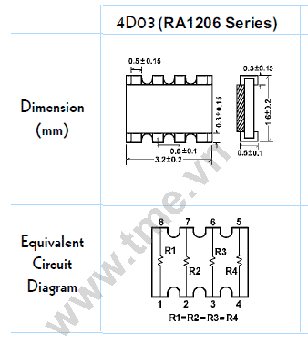 1K 1/10W 5% Chip Resistor Array (SMD0603x4)