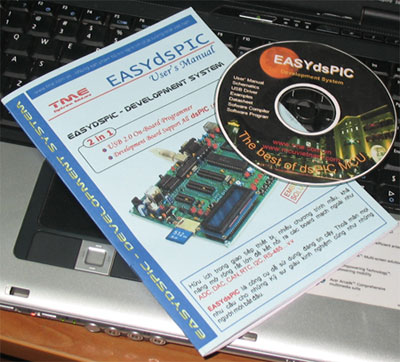 Đĩa CD: Kèm theo chương trình mẫu viết trên MPLAB C30 của Microchip, Sơ đồ nguyên lý EASYdsPIC, các software liên quan và nhiều tài liệu bổ ích khác