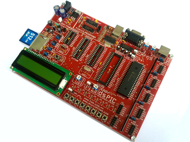 Suport dsPIC DIP18 (30F2011, 3012...), DIP28A(30F2012, 3013...), DIP28B (30F2010, 3010, 4012...), DIP40A(30F3011, 4011..), DIP40B(30F3014, 4013...) tất cả đều kèm tụ lọc triệt nhiễu, chú thích rõ ràng