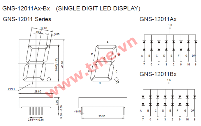 1.2" Cathode RED Single 7-Segment display