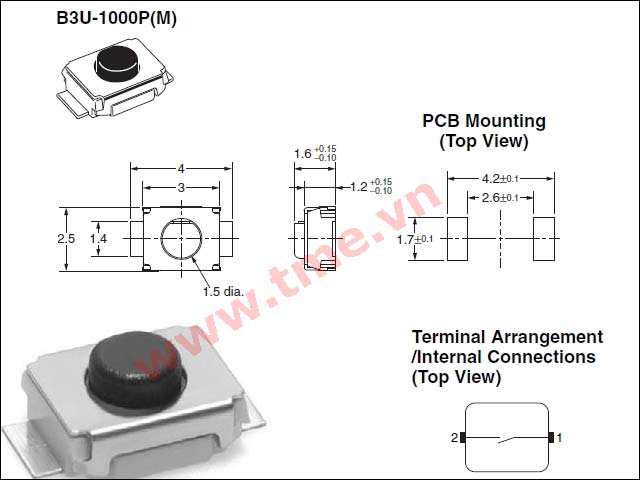 Size 2.5x3.0mm h=1.6mm