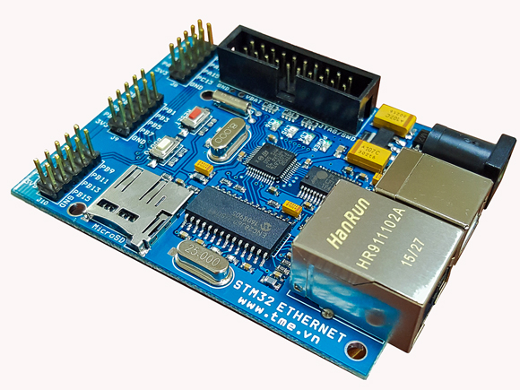 STM32-ETH là Board mạch nhỏ gọn, hoàn chỉnh về phần cứng, rất tốt cho việc phát triển các ứng dụng giao tiếp ethernet, tiết kiệm thời gian và chi phí, Soucer code có sẵn, giúp bạn dễ dàng phát triển ứng dụng theo nhu cầu của mình.