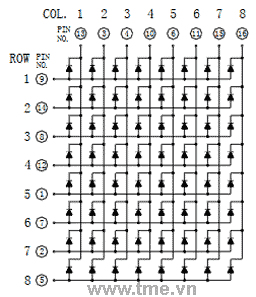 3mm 8x8 Dot matrix LED display, BLUE color, 32x32mm