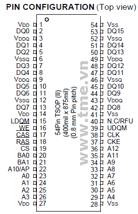 256Mbit SDRAM, 4M x 16Bit x 4 Banks Synchronous DRAM LVTTL, Max. Frequency: 133MHz(CL=3)