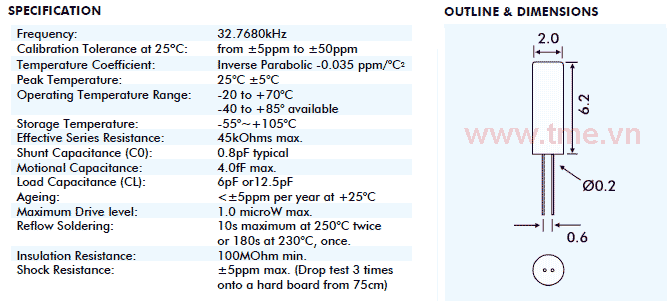 - An industry-standard source of 32.768kHz clock signals
