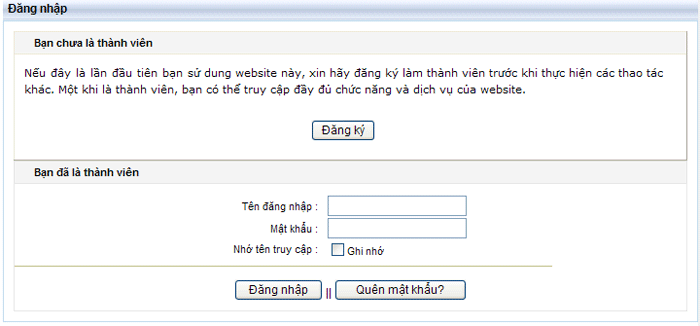 • Nếu bạn đã có tài khoản, hãy nhập thông tin tên đăng nhập và mật khẩu, sau đó nhấn " Đăng nhập"