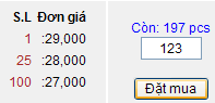 • Khi nhấn "Đặt mua" hàng hóa sẽ đưa hàng vào "Giỏ hàng" mà không có thông báo gì, hãy quan sát sự thay đổi trong "Giỏ hàng"