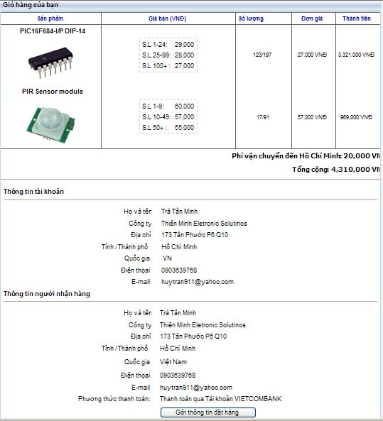 Nhấn vào nút "Gửi thông tin đặt hàng" như trong Hình 3-3, một thông báo xác nhận. nhấn ok để hoàn tất đơn đặt hàng của mình