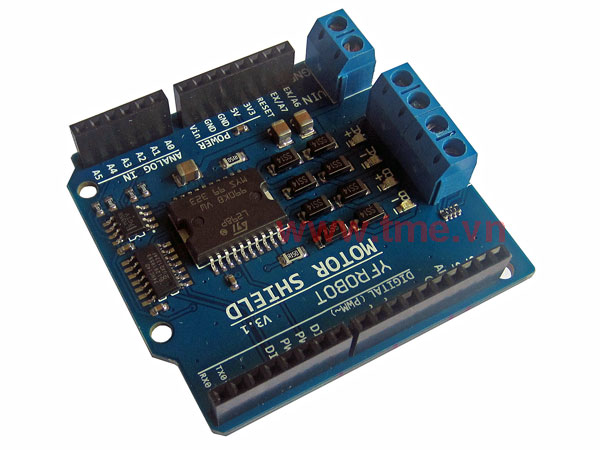 - Vin on the screw terminal block, is the input voltage to the motor connected to the shield. An external power supply connected to this pin also provide power to the Arduino board on which is mounted. By cutting the "Vin Connect" jumper you make this a dedicated power line for the motor.
