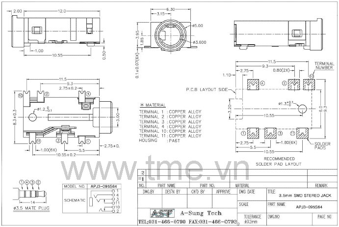 SMD 3.5mm Stereo Phone Jack 4-pole