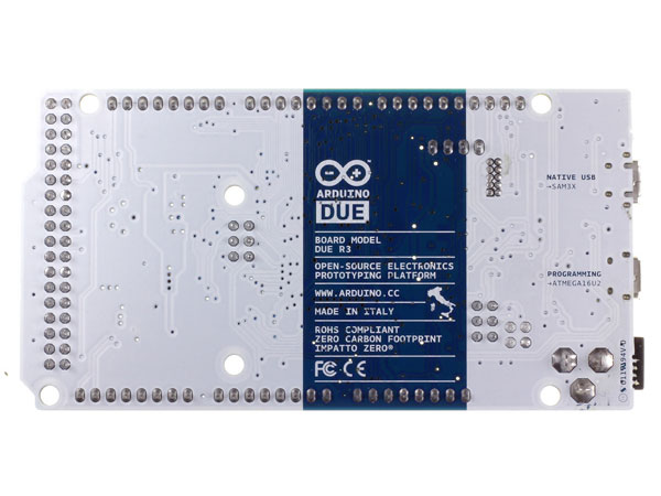 The board contains everything needed to support the microcontroller; simply connect it to a computer with a micro-USB cable or power it with a AC-to-DC adapter or battery to get started. The Due is compatible with all Arduino shields that work at 3.3V and are compliant with the 1.0 Arduino pinout.