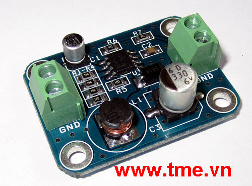 • Board mạch sử dụng IC MC34063A (Step-Up Switching Regulator) có bảo vệ ngắn mạch đầu ra
