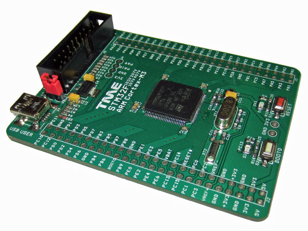 Trên board tích hợp sẵn nguồn 3.3V, cổng mini USB và JTAG /SWD interface giúp bạn có thể sử dụng debugger STLINKIII or JLINKV8 hoặc STLINK để  kiểm tra chương trình của bạn.