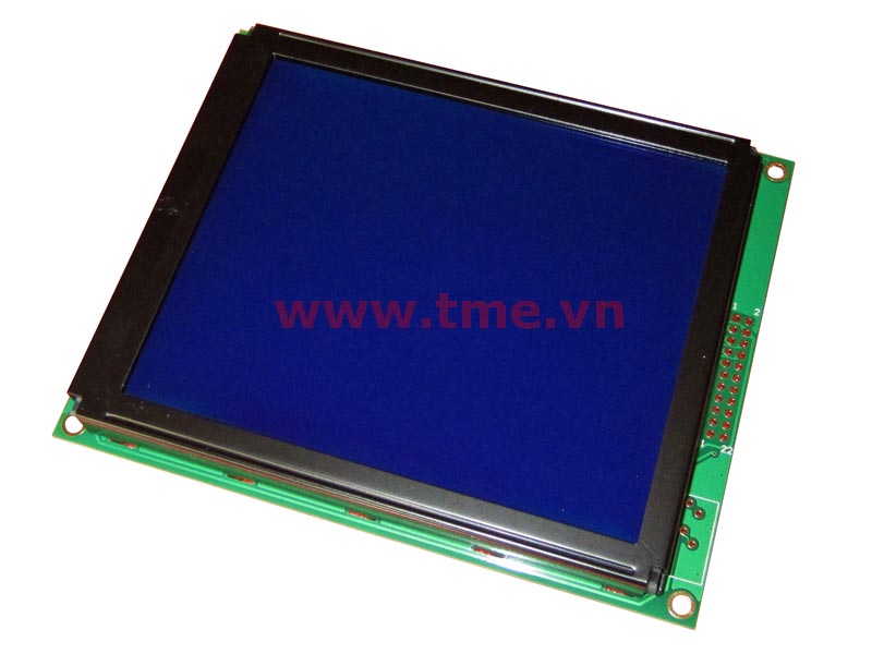 This is a big, really big 128x160 pixel graphical STN LCD. The LCD has a blue background and pixels appear white. Unit comes with an LCD backlight and built-in parallel interface controller. LCD and backlight are driven by 5V (negative voltages for contrast are generated on-board).