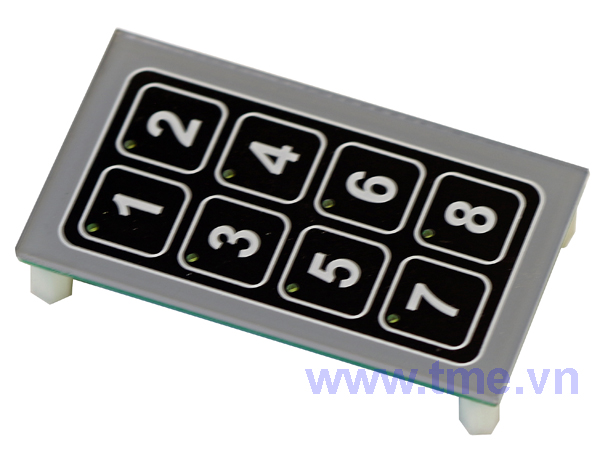 - 8 phím 2x4 sử dụng công nghệ cảm ứng điện dung (capacitive sensing technology)