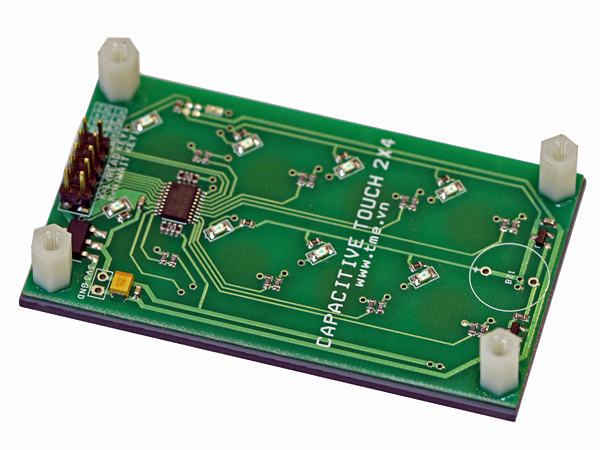 TOUCH-CAP-2x4 là bàn phím cảm ứng rất đẹp sử dụng công nghệ cảm ứng điện dung, rất nhạy. Bạn không cần phải chạm trực tiếp lên miếng PCB mà thông qua một miếng mica dày 2mm có in sẵn các chức năng ở mặt dưới. Có chỉ báo bằng LED cho biết tình trạng của phím nhấn. 8 ngõ ra logic độc lập tương ứng với 8 phím nhấn độc lập