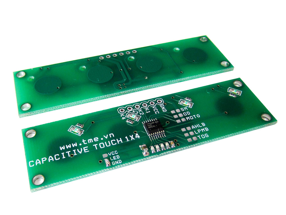 TTP224-TOUCH-4 sử dụng IC TTP224N Cảm biến cảm ứng điện dung với 4 phím cảm ứng độc lập, được thiết kế để thay thế phím bấm trực tiếp truyền thống, mạch in chất lượng cao, thiết kế đẹp, kích thước nhỏ gọn, tiện dụng. Có độ nhạy - độ bền - độ ổn định cao, cung cấp một cái nhìn hiện đại và thẩm mỹ.