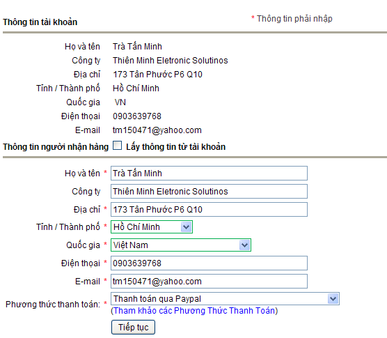 Sau khi bạn chon "Thanh toán qua Paypal" và nhấn "Tiếp tục", hệ thống sẽ chuyển qua giao diện của Paypal, bạn sẽ đăng nhập tài khoản Paypal của mình và thanh toán...